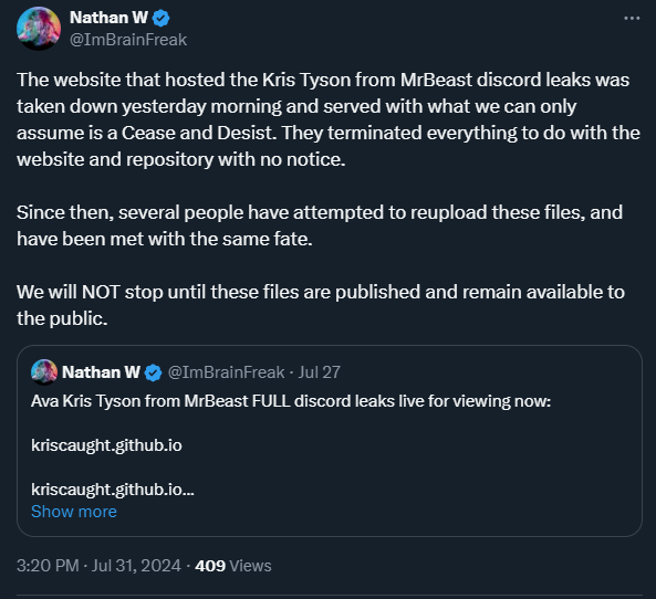 Not sure if there is an archived version of the original up or not but that in itself was pretty damning when this stuff first started coming out for those who were skeptical of Chris being a pedo.