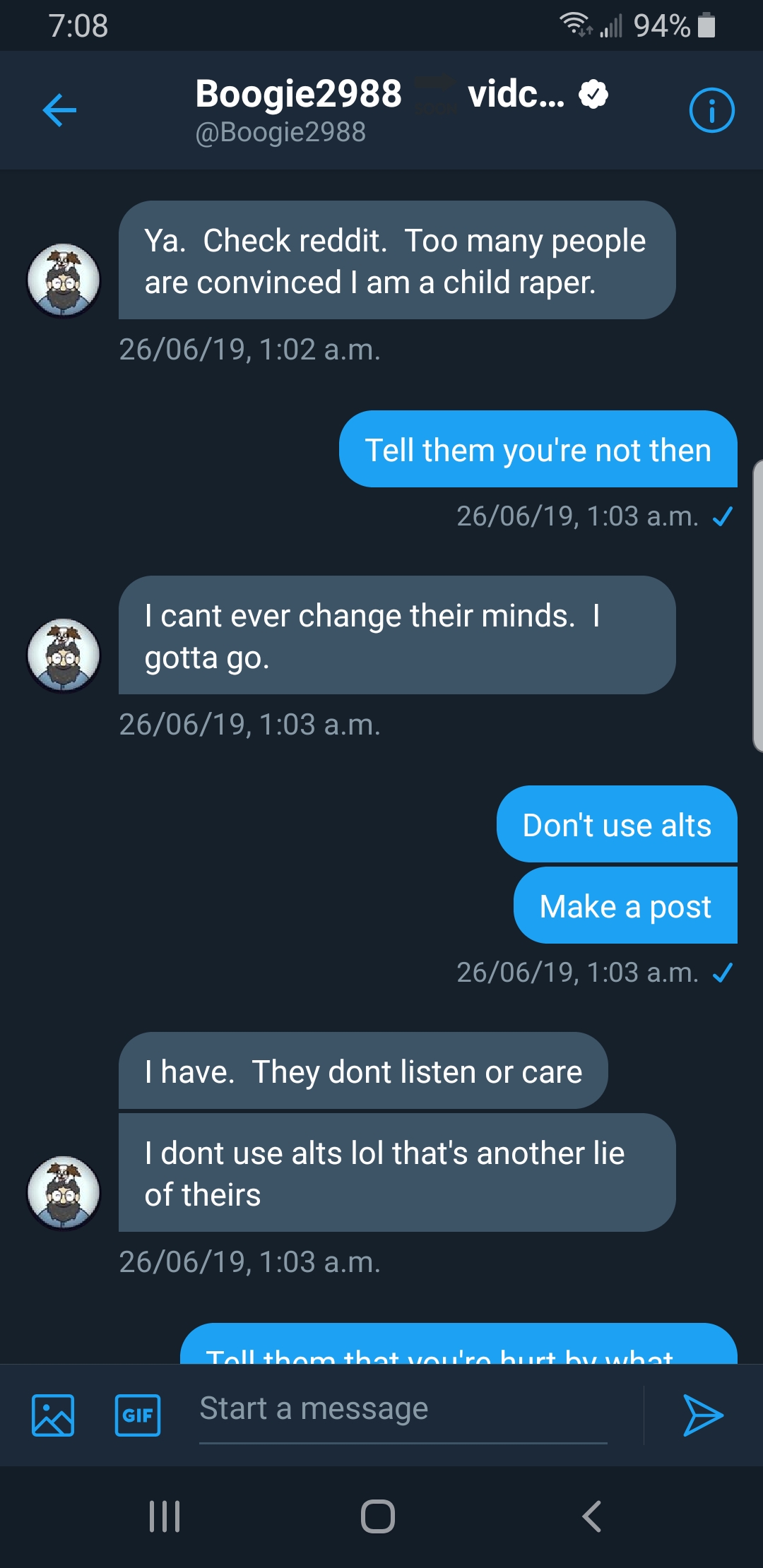 RECENT SOCK PUPPETSIt's all been documented well in Hotel in Minsk's post in the reply, but Boogie has been ramping up the alt accounts lately. This apparent DM he received when he logged into Reddit for the "first time in ages" is perhaps the first clue: