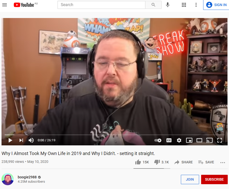 This is my personal favorite Boogie alt. Around the middle of May last year, Boogie uploaded a video titled "Why I Almost Took My Own Life in 2019 and Why I Didn't" - Which was essentially a video about his fake Vidcon suicide plans:LEOCHRIS RICHARDSON