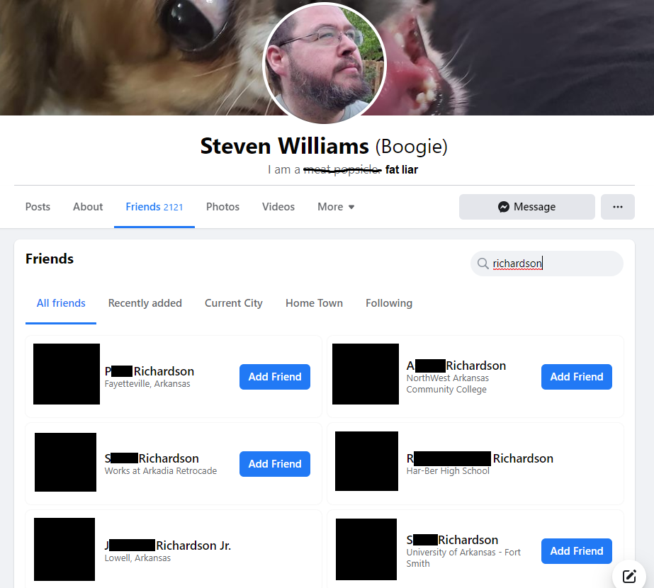 Oh yeah, he also has no Facebook friends by the name of "Leo" or "Chris Richardson":
