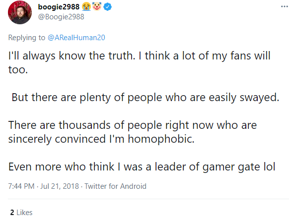 It really can not be understated just how embarrassing his reaction was to the controversy from his "gay marriage can wait 20 years" comments on the H3 podcast. Look at the numbers from June '18 when all of that went down, 3,500+ likes, 2,500+ likes, that was a regular level of engagement for him at the time - he was wayyy more popular and well-liked back then.This has somehow magically changed since his controversial comments on the h3h3 Podcast. Funny that. (He still never mentions male attraction though)