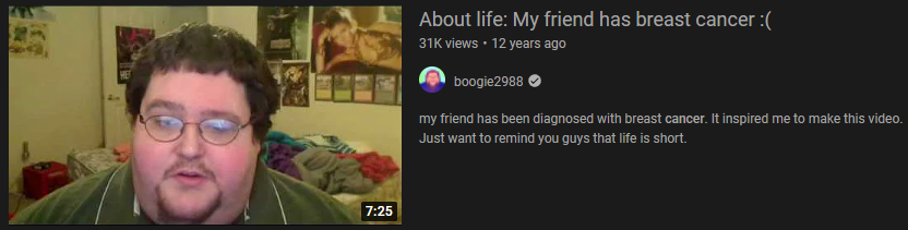 For how much Boogie gushes about how he does Youtube because he loves to and loves entertaining people and all this shit, he clearly hates it. He takes uploading a shitty short edited from another of his videos that under-performed as new content.