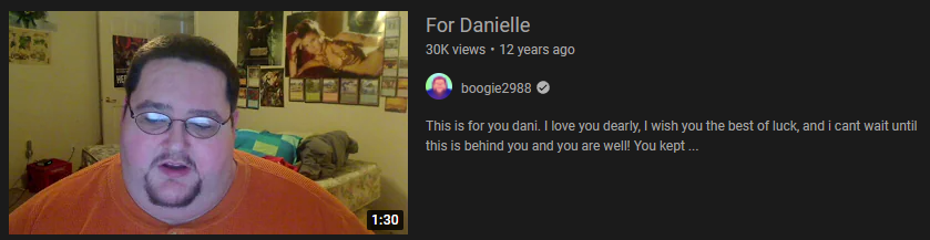 I’d actually kind of love as one final kick in the shins if his final video (which he’s already promised when suicide baiting would be aimed at making his haters feel bad so it would be a total smug ass, woe-is-me, shit show) was never posted to YouTube or Twitter so none of his actual intended audience got it, but that we got a copy so we could have one last piece to analyze as kind of our own little wrap party and then tuck it away so Boogie is forgotten about without getting the last word in.