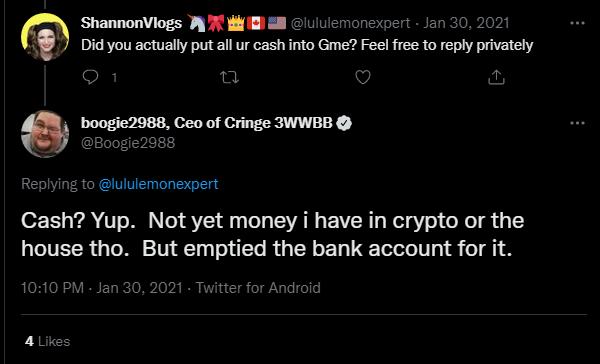 As I said, his financial situation is hard to read. Keep in mind that he put a down payment on a Tesla 3 years ago, bought a nice car last year, bought a 5K puppy on a whim, still hires sugar babies (fairly frequently from what I'm gathering) and drops big money on Magic cards. Perhaps he's not making as much as he did in years past, but he'd still be on some minimum/decent wage right now.