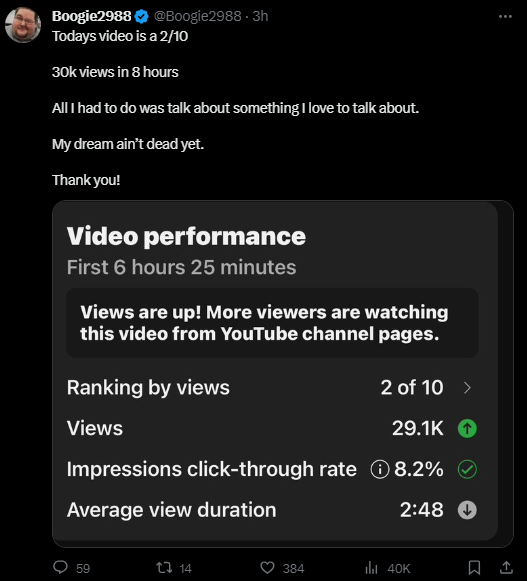 I should also mention that his subreddit has basically fallen to complete too, people are actually treating/considering it like a Boogie2988 snark reddit now which is pretty fucking funny. What happened to the turbonerd who used to hypermod it? I swear anything negative about him used to get pretty much stomped out immediately, now it's thread after thread of criticism with some support posts sprinkled in here and there.