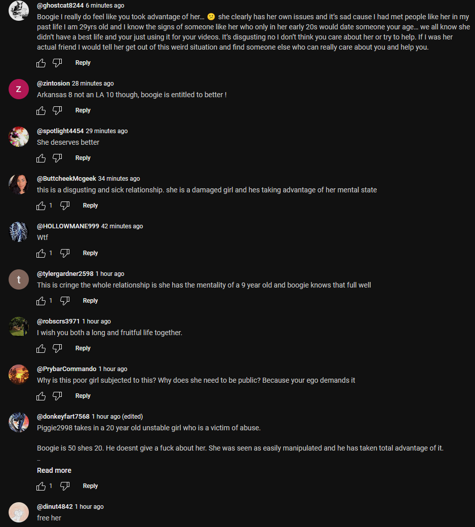A selection of the top results when sorted by 'Top Comments'Jesus Christ, Boogie is getting destroyed in his comments. The viewers of Charlie's video flocked to the Dez interview and they're all calling him a pervert and a sick fuck. Like all of them. Someone should screencap it before he deletes them.