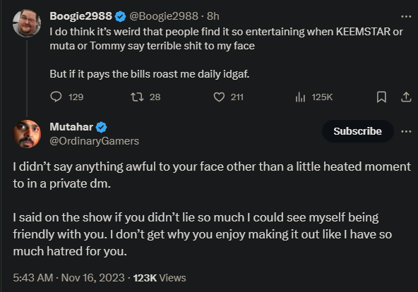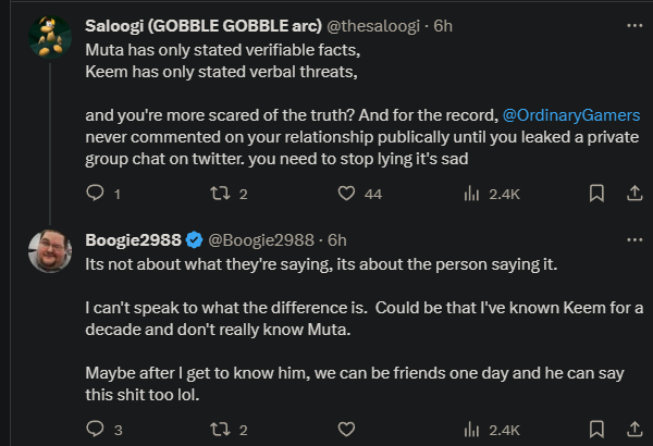 I doubt any of the farmers will go there though. The whole podcast series is very performative as I see it so far, everyone wants to make fun of Boogie but they also want to keep him in tow and it's very obvious still that behind the scenes Boogie has a lot of control over the content. I guess I'll see where things go with episode 3 but so far it's missing that real edge you see when Boogie actually gets called out and angry on his lies.