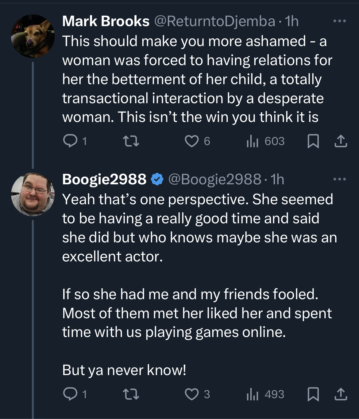 He was doing this whole charade on Twitter about how he didn't pay for Lucy, how he simply met her on Seeking and did traditional dating and told some guy who had dared suggest Boogie paid for it that "it's [traditional dating] something I bet you know little about." LMAO. Boogie buying hookers, lying about it, and then passively aggressively imposing himself as a Chad over some random Twitter guy is peak Boogie.