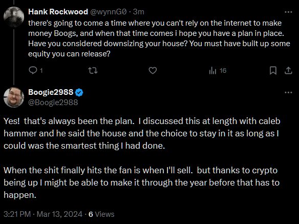 Boogie says that he's holding crypto still. Jackson from The Official Podcast points out that Boogie is begging his fans to foot the bill for his garage despite holding said crypto. Boogie plays the cancer card: