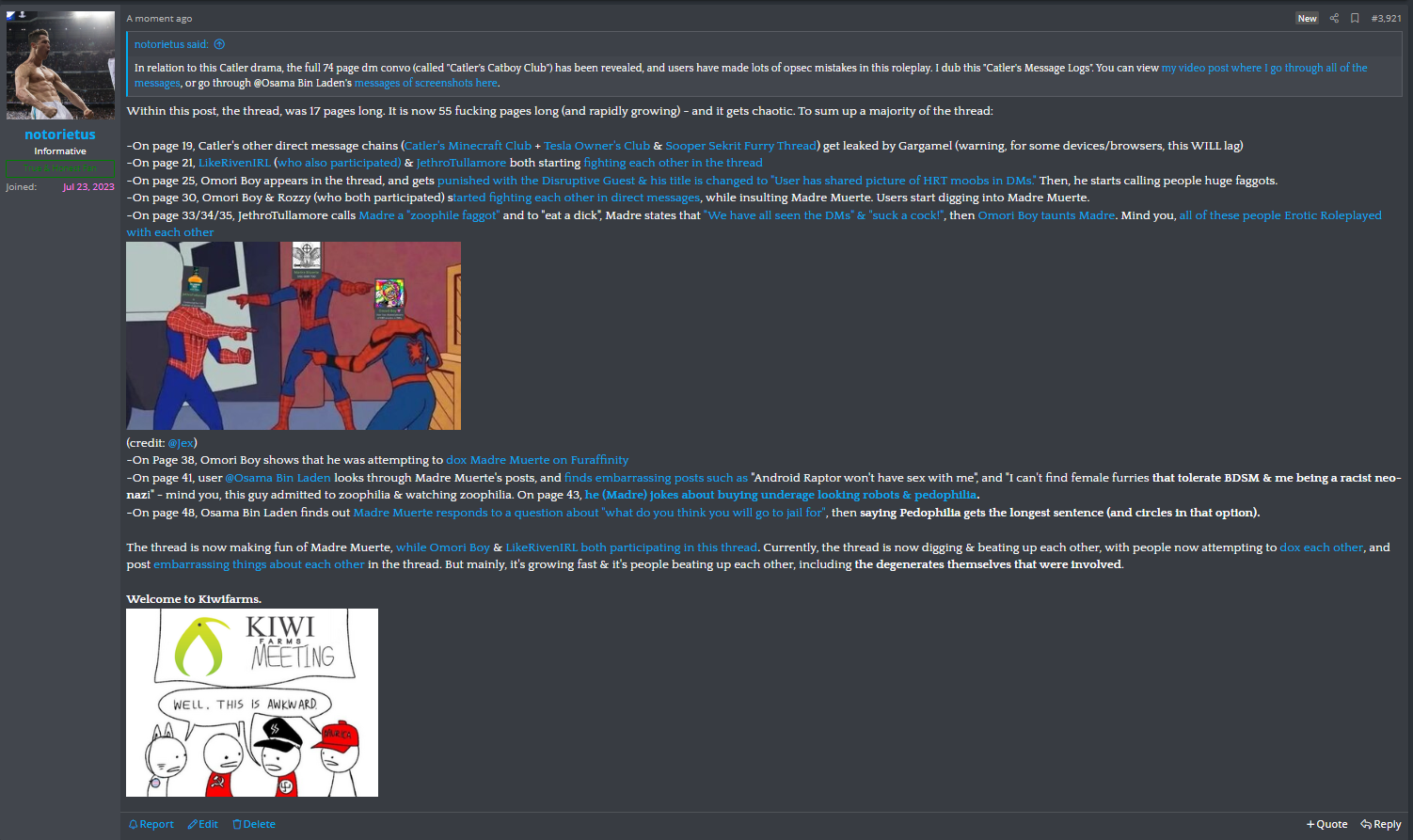 And how they were stupid enough to do furry ERP on fucking Kiwi Farms of all places instead of somewhere like Discord or F-List.All of this started because of Furry ERP.