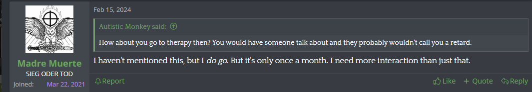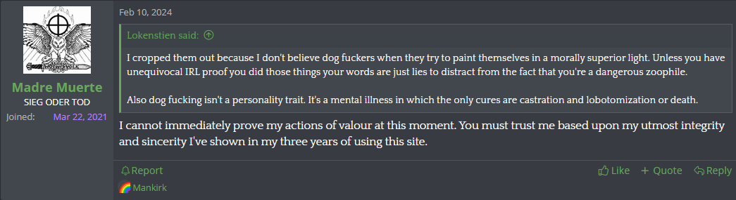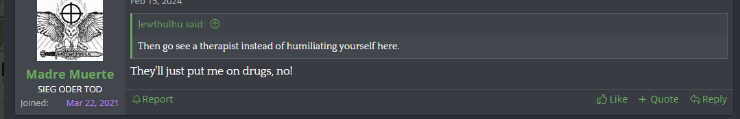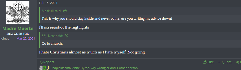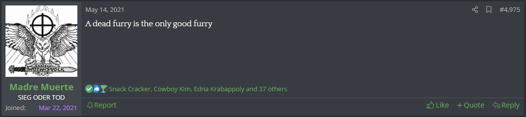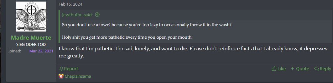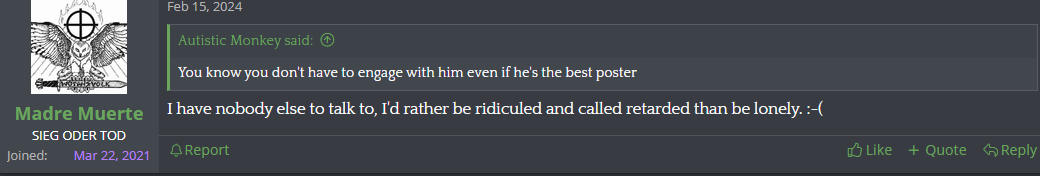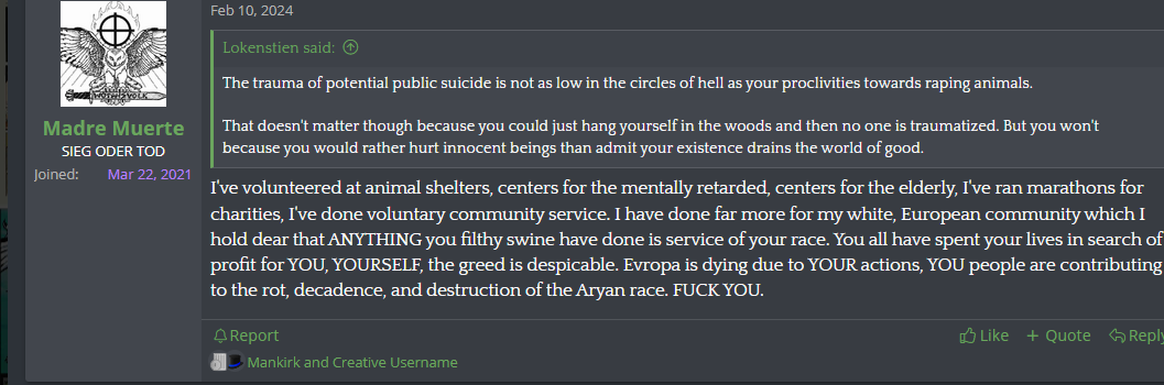 Why is it such a common theme that latinx are white nationalists? "wotans volk" Bro the Germanic tribes who worshiped Odin would've thrown you in a fucking bog for your degeneracy before you even had a chance to fuck kids or kitties. How can you claim to be a racial supremacist if you're bottom of the barrel even on a site like Kiwi Farms? Unless you're one of the non whites who really likes raceplay shit, which is starting to make sense given your F-list. I'm a bit of a /pol/ tard but even I gotta admit that no one makes white supremacists look worse than themselves.