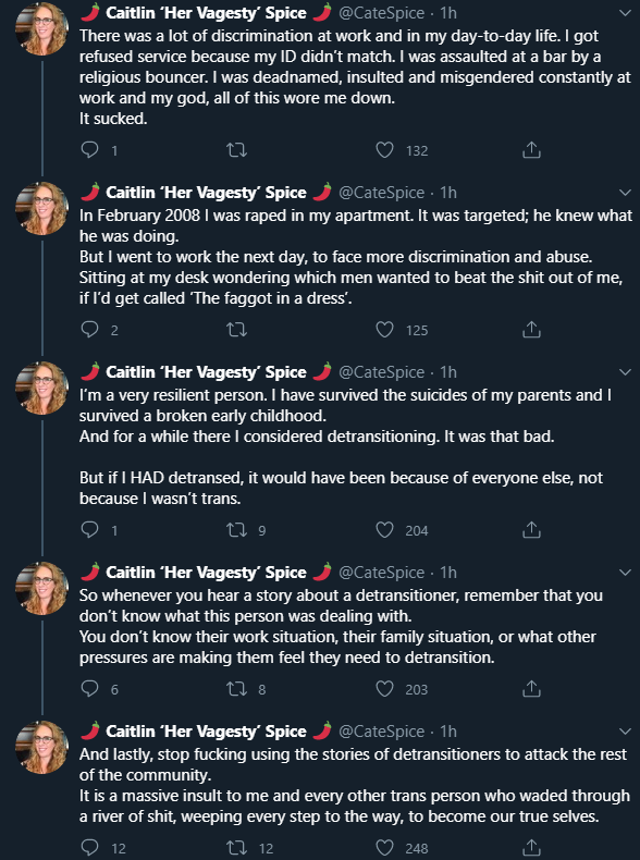 TL;DR- Dan tells the story of how he experienced discrimination from society and at the workplace. Claims to have been raped and assaulted. Uses this an excuse to invalidate reasons to detranstion that have nothing to do with social pressure.