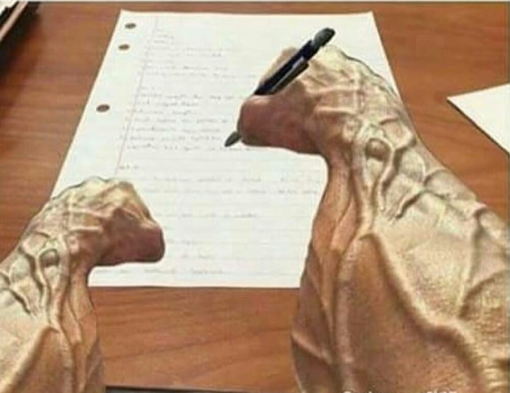 Dan preparing to write his tweet complaining about people pointing out he has man hands:This man is in his 40's: