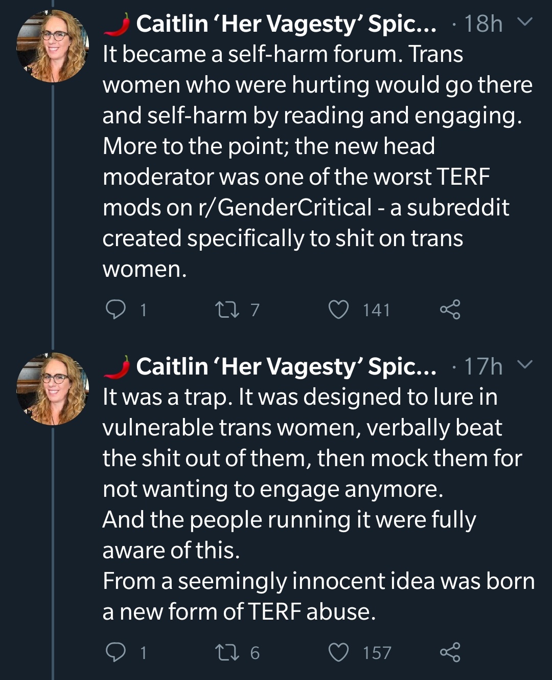 Sounds like paranoid schizophrenia. The only troon I've ever known in real life had that. Once he got properly diagnosed and medicated, he also stopped being a troon.Dan vs the TERFS- r/thathappened:
