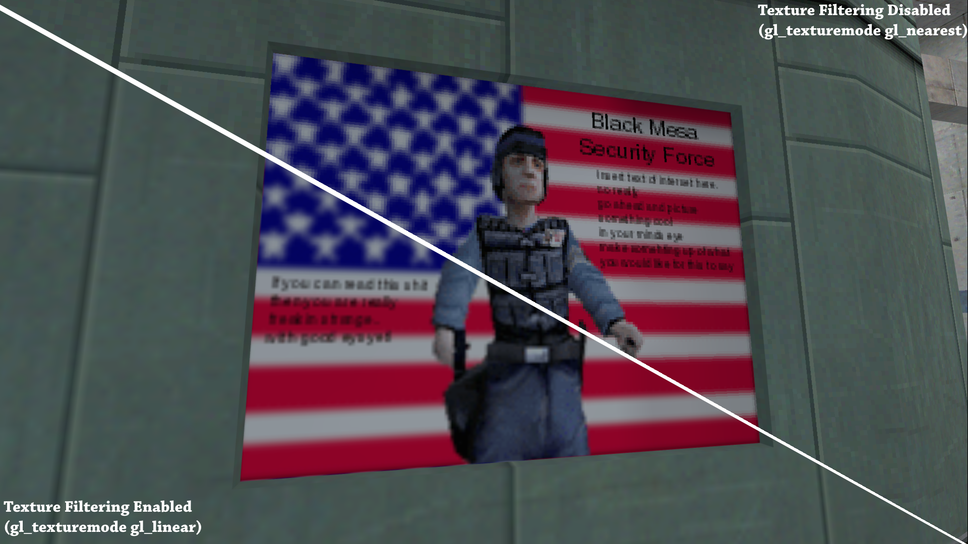 Lots of 3D 90s games did use interpolated texture sampling, but I think the higher rendering resolutions of modern computers emphasize the blurry muddiness of the low resolution textures. By using nearest neighbor it now has an aesthetic, it looks better, it's crisp, even when it's not truly "original". I think Half-Life 1 looks much better when played with nearest neighbor, even though that wasn't how people played it (assuming they weren't using software rendering). People have much more fondness for the PSX aesthetic (nearest neighbor) than the N64 (low resolution linear interpolated), which was criticized even then.