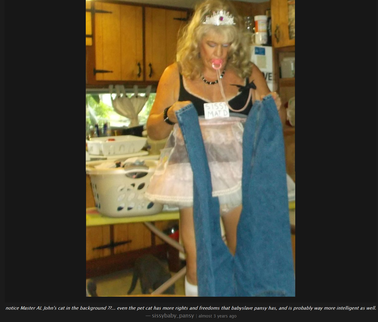I get the feeling Al wouldn't let Richard stop doing this sissy pansy bullshit even if he wanted to - and if he did, where would Richard go from there? He's signed over his whole life, he has no family or friends because Al made him cut all ties, and he can't go get a job because this sissy LARP got him fired for indecency and he hasn't worked in 10+ years so he could commit full-time to servicing Al's eternal boner. The hallmark of an abusive relationship is that the abuser makes it difficult or impossible for their victim to leave them.