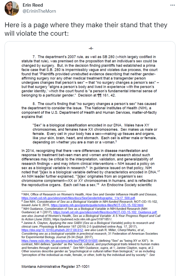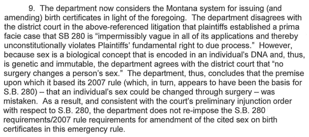Tony has more on how Montana is going to "violate the court" by considering sex unchangeable by surgery: