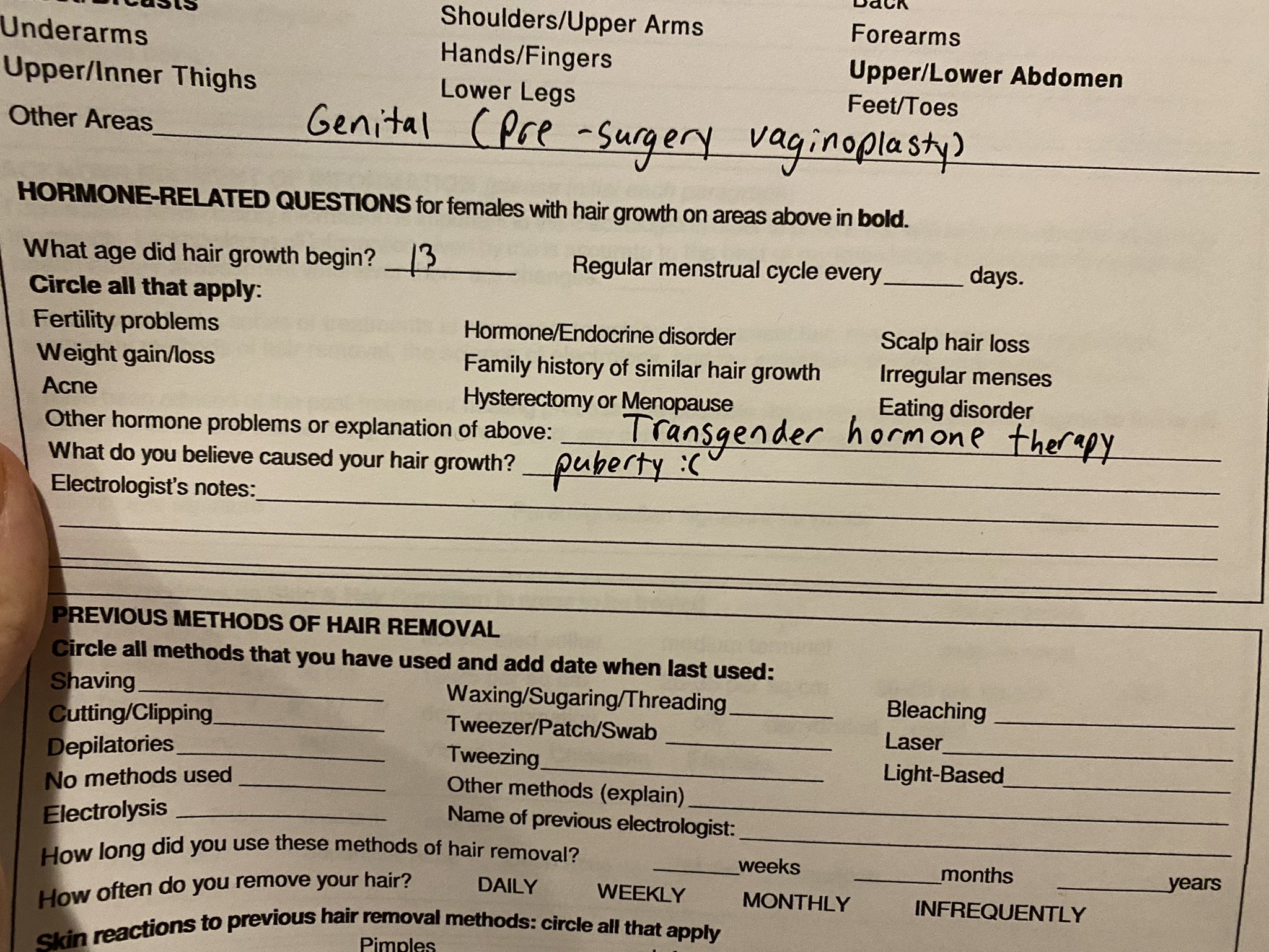 Gives me the creeps. Fucking "puberty :(". It's clearly the women's form and my heart goes out to whoever had to process this form and ultimately electrolyse his hairy balls.