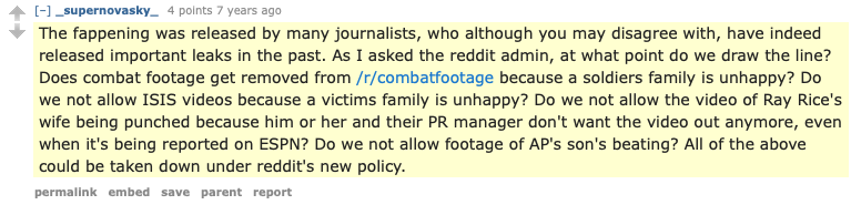 Can’t quote @Geranium, but want to sperg on the sports stuff in those Reddit comments. Reddit has zero impact on the general sports community. Twitter is, for better or worse, much more influential. Reddit shouldn’t have much of an impact regardless, one of the top posts on r/nba all time is on how LeBron James gave Kevin Love depression. Excuse the shitty comparison, but it’s the post for sports Reddit that is most close in general character to the infamous Boston Bombing posts on Reddit. Reddit also had nothing to do with Ray Rice or Adrian Peterson getting their just desserts. Mainstream media spreading the news on those two is what forced the NFL to do something. In conclusion, Tony is way off with his ideas of Reddit’s impact, which is a good thing. His comments on sex and consent are very counter to the current beliefs at Reddit as well, which I find amusing.