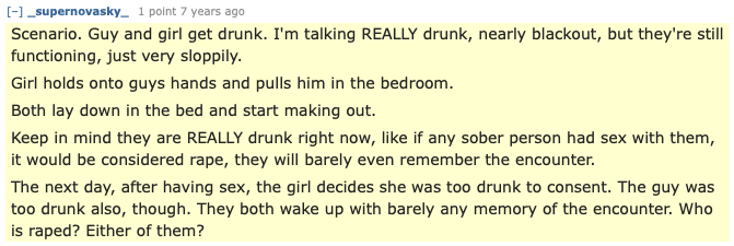 And there's definitely nothing to read into the fact that eight of his comments made across two Reddit threads in 2017, where he cautioned against believing rape victims, have been deleted. (reddit, archive; reddit, archive; no Unddit links as it struggles with the volume of comments on those threads.)