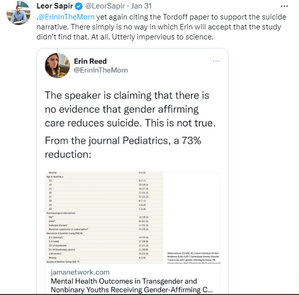 Adkins also asserted that “evidence strongly suggests that gender identity is innate or fixed at a young age and that gender identity has a strong biological basis.” (At no point in her expert declaration did she cite any sources for any of her claims.).