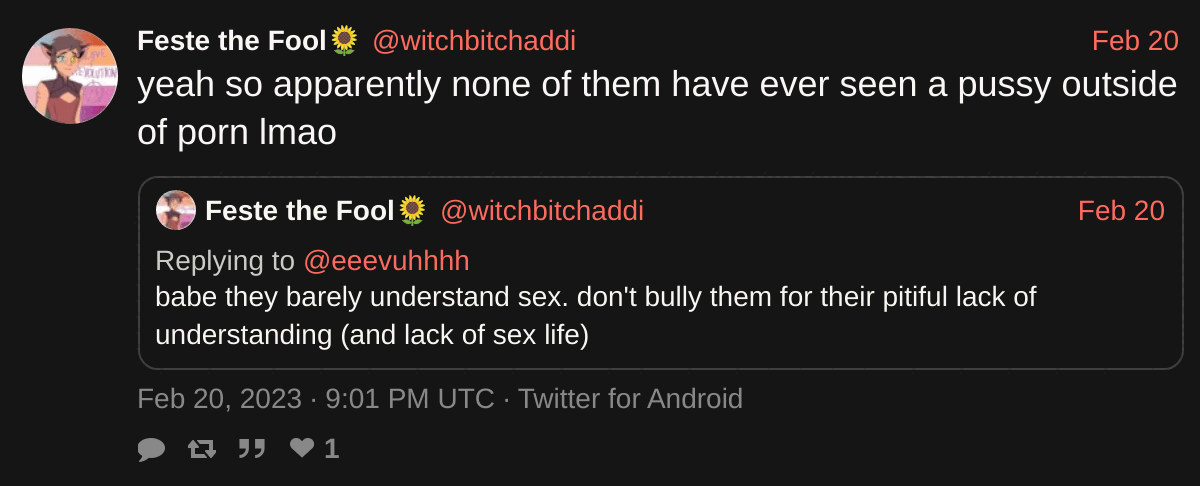 ). FtMs? Who? What? They're gender traitors, who cares about natal