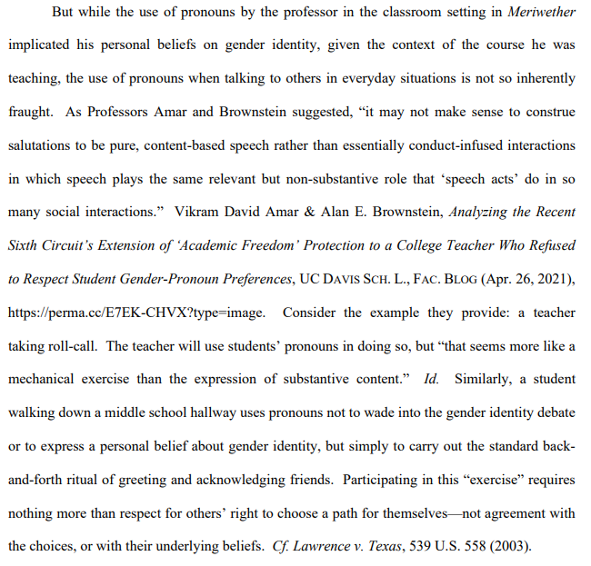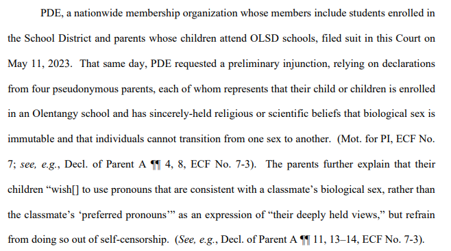 In any case, the parents attempted a claim that their religion believes sex is immutable lol: