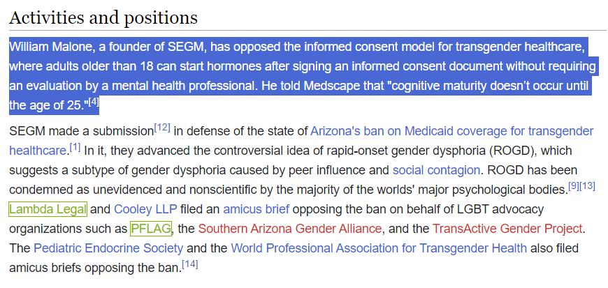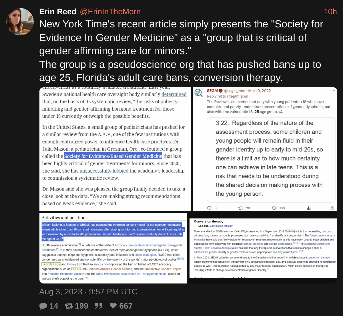 New York Time's recent article simply presents the "Society for Evidence In Gender Medicine" as a "group that is critical of gender affirming care for minors."