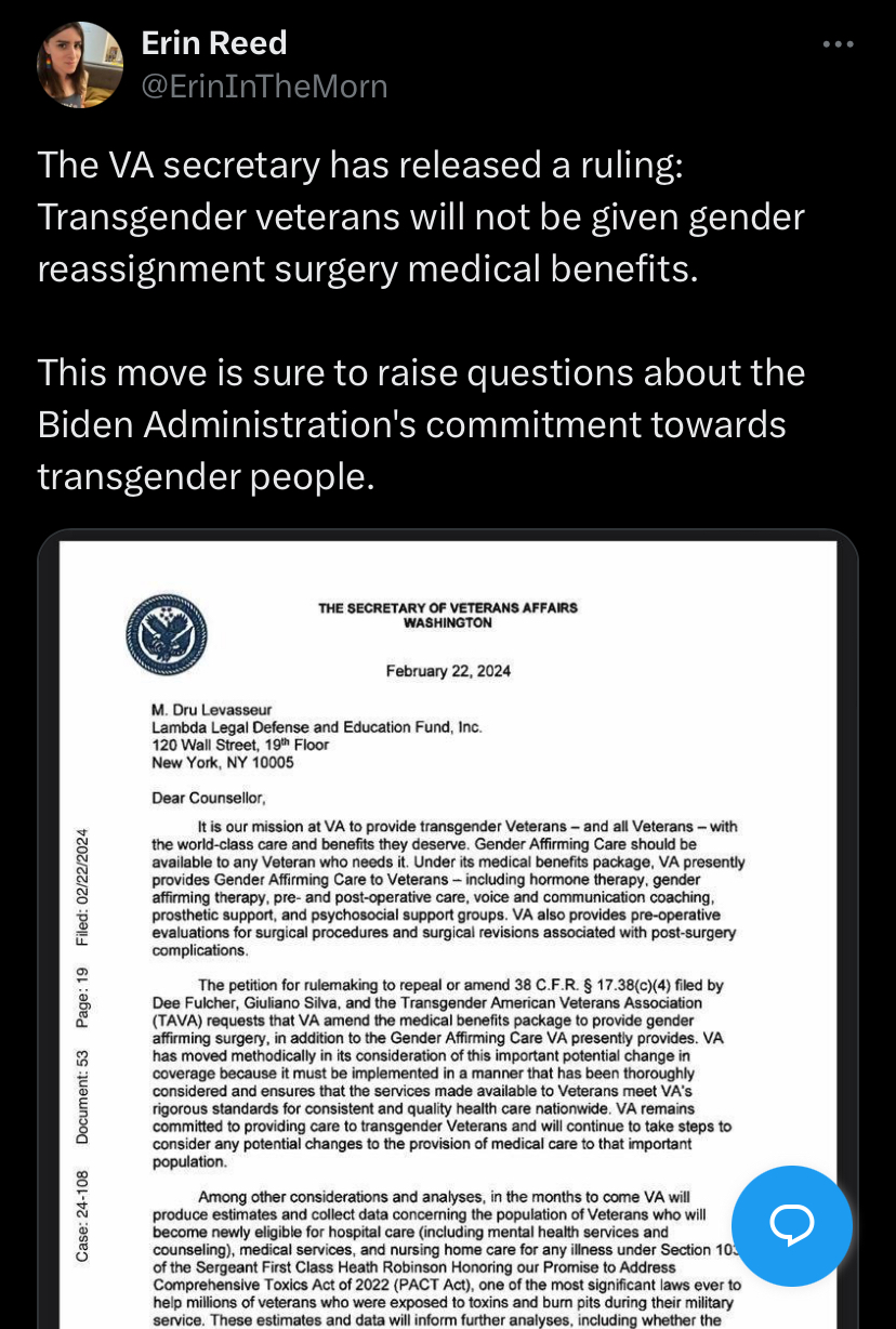 Good news: Your tax dollars will not be providing dick inversions for demented ex-soldiers like “Alana” McLaughlin.