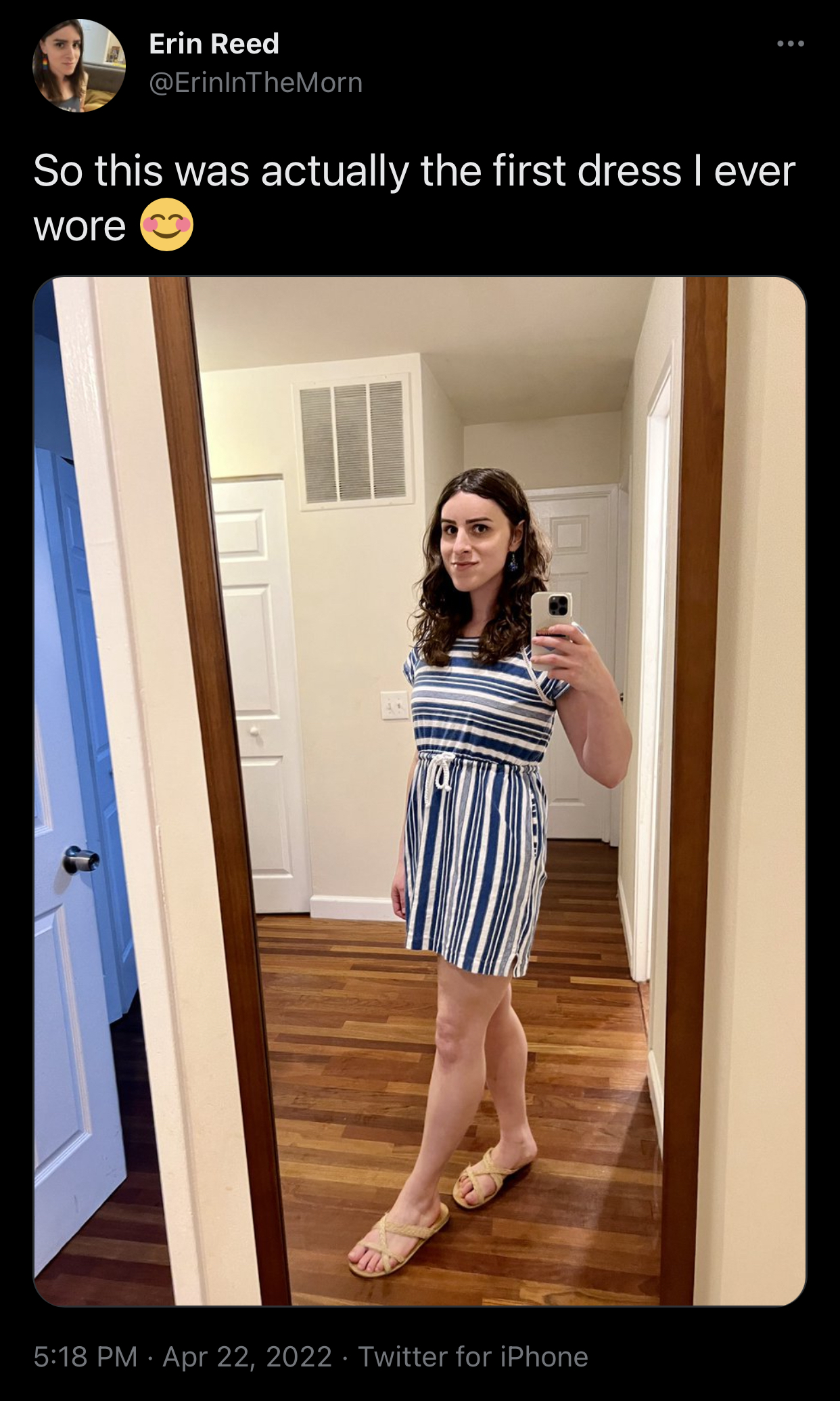 Erin Reed / Anthony Reed II / @ErinInTheMorn / @ErinInTheMorning / @ErinInTheNight / _supernovasky_ / beholderseye / realitybias / AnonymousRabbit - post-op transbian Twitter/TikTok "activist" with bad fashion, giant Reddit tattoo. Former drug dealer with felony. Married to Zooey Simone Zephyr / Zachary Todd Raasch.