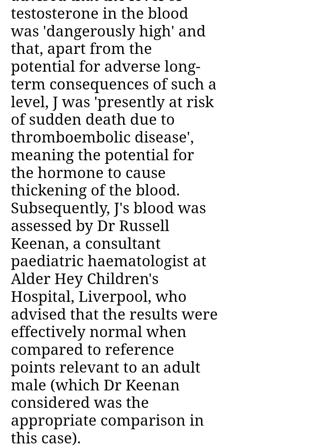 I despair for this child. How the fucking hell would it be appropriate to compare a 16 year old girl to an adult male's testosterone levels.