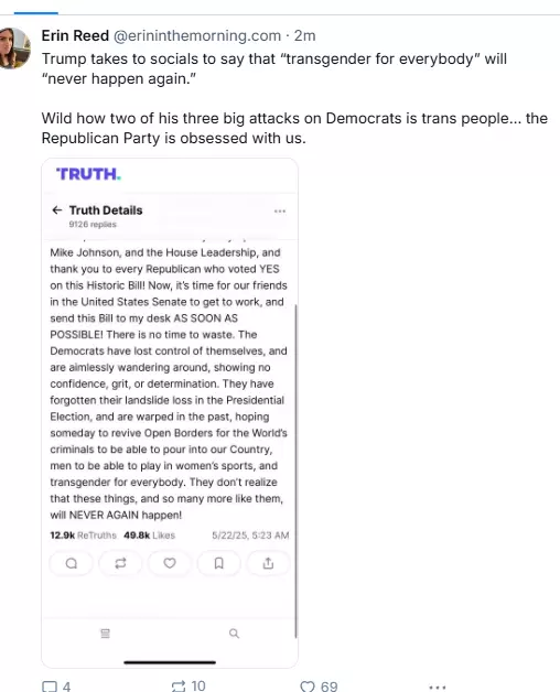 Erin here plain lying. Trans people who have had surgery do not necessarily require exogenous hormones. A woman who has cut her tits off doesn't require testosterone.