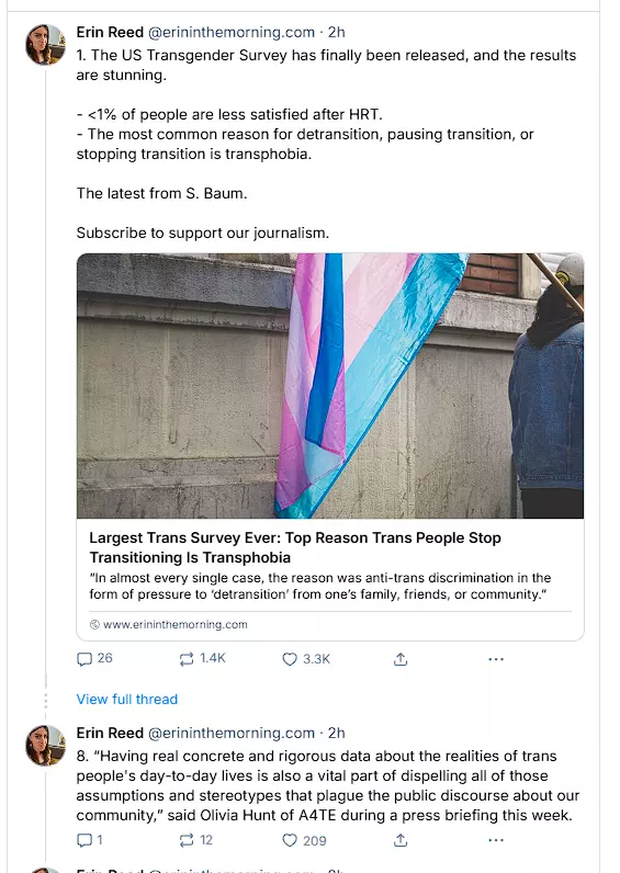 Doesn't matter. People who seriously regret transgender-identification (of any kind) are almost certainly not going to continue to identify as transgender. So they'd be automatically excluded from the survey. By its design the USTS cannot tell us anything about detransition or regret. It's a survey of people committed to transgenderism.If most of those people's definition of transitioning is just them changing pronouns and cuts their hair short if they're a girl then of course not many are going to regret anything because there's no long term consequences to doing those things.