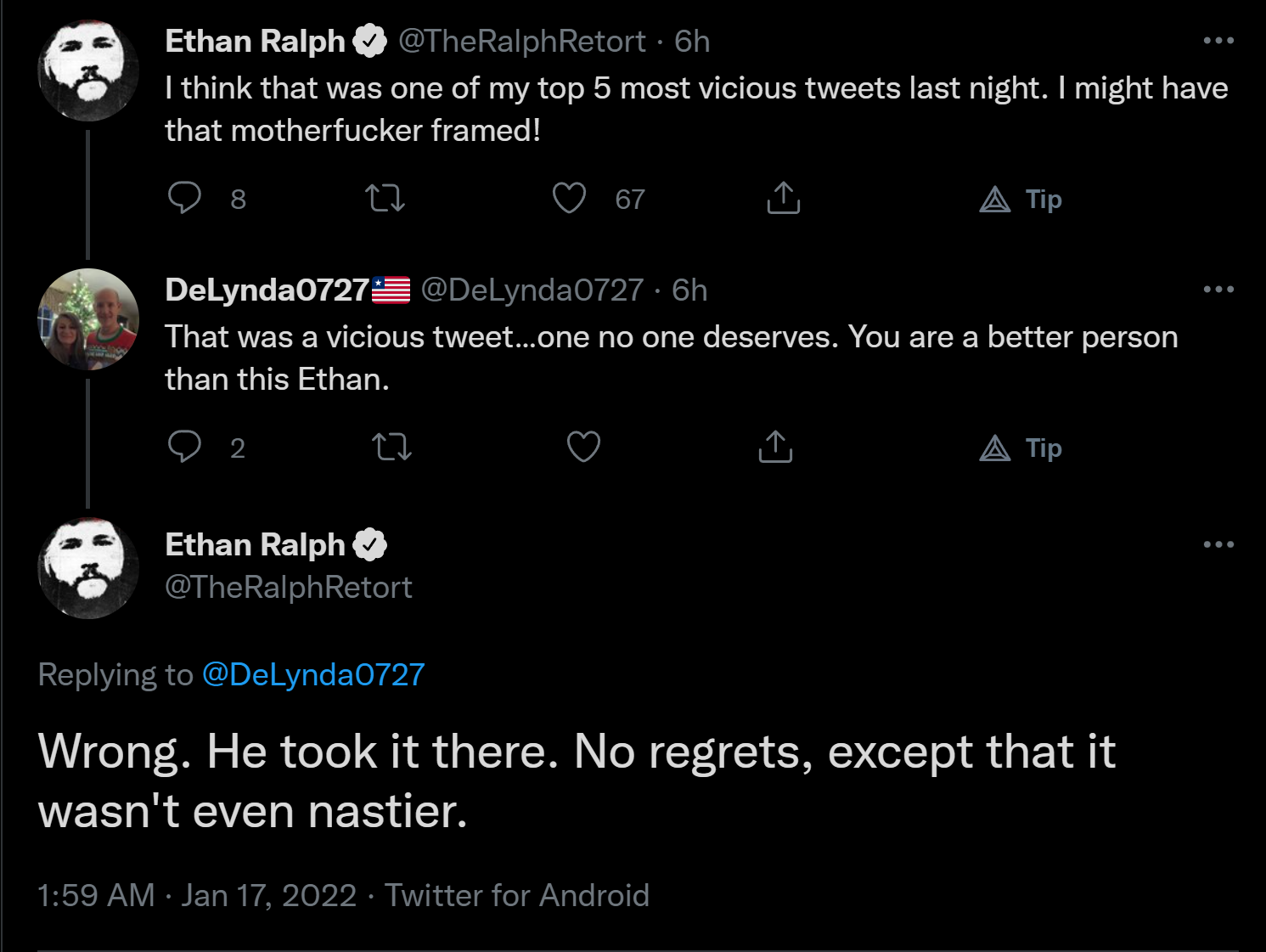 lol he legit just thinks being mean to him is a reason in and of itself to turn someone into a pariah, if ralph had raped his mom hed use warski yelling at him as justification to call him a snake,Ralph is proud of himself for making fun of Warki's aborted baby: