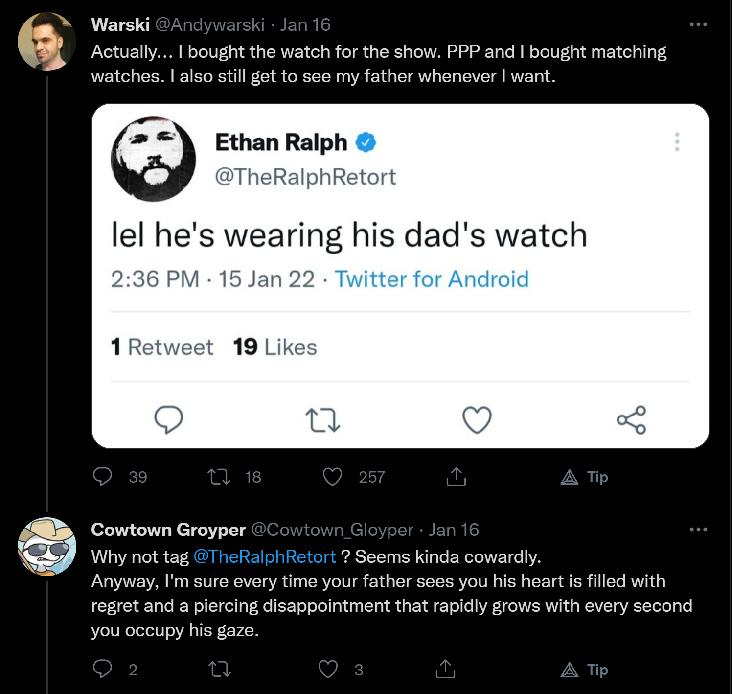 have you seen warski's twitter profile pic vs ralph? who looks more douchey