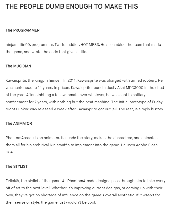 Like I said earlier, the rest of the blog is just pointless bitching so I see no value in adding it to the post. Ninjamuffin's teehee le internet funny writing style is also making my skin crawl. Maybe they'll keep a somewhat consistent schedule now that they've been called out, but I wouldn't bet money on it. This game is never coming out.