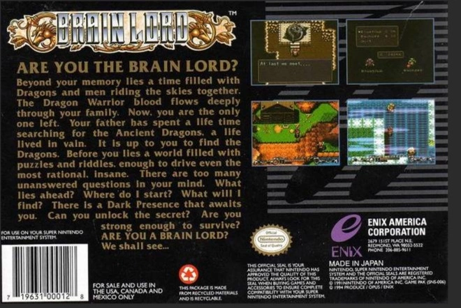 Story I've heard is its called Brain Lord because of the emphasis on puzzles, some of which really are kind of cryptic IIRC.What is anyone supposed to get from this title and box art? How did they end up with this? It turns out that the game is a pretty standard Action RPG with a companion mechanic. I started it up today, and while it's nothing incredible so far, it's comfy and the music is nice.