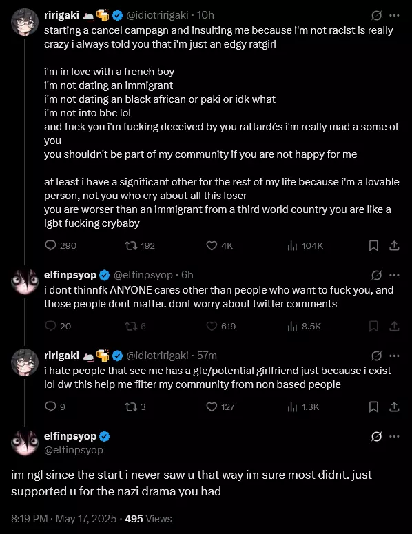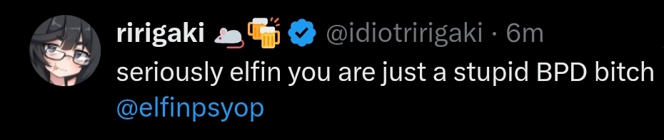 The story of those 2 are hilarious, they become semi popular after the drags of Gumpai went to greener (and less cucked) pastures but were to disgusted by Kiki that people in the farms already know about her, the first to go down was Elf, the simps that got cucked by her moved to Riri but then the french saw her fate and pulled a boyfriend out of nowhere and started to sell that she was "the pet rat of chat" ofc the cucks did not buy it and the cycle start againThe cope is real with these retards: