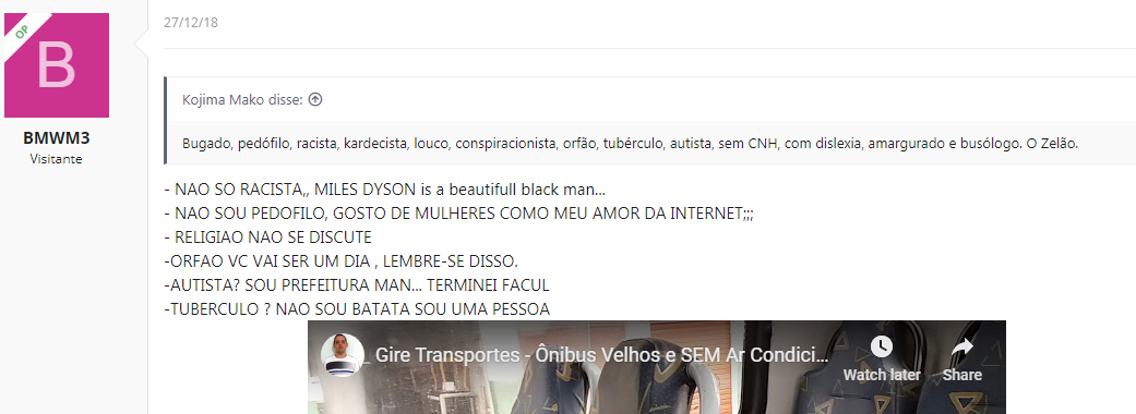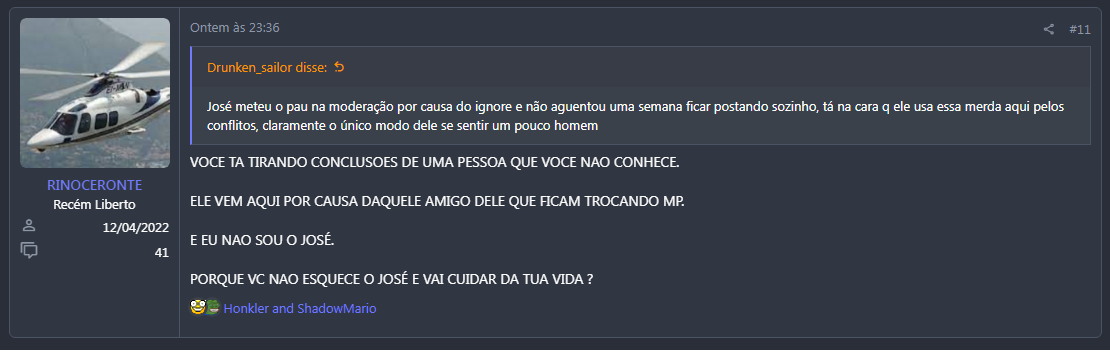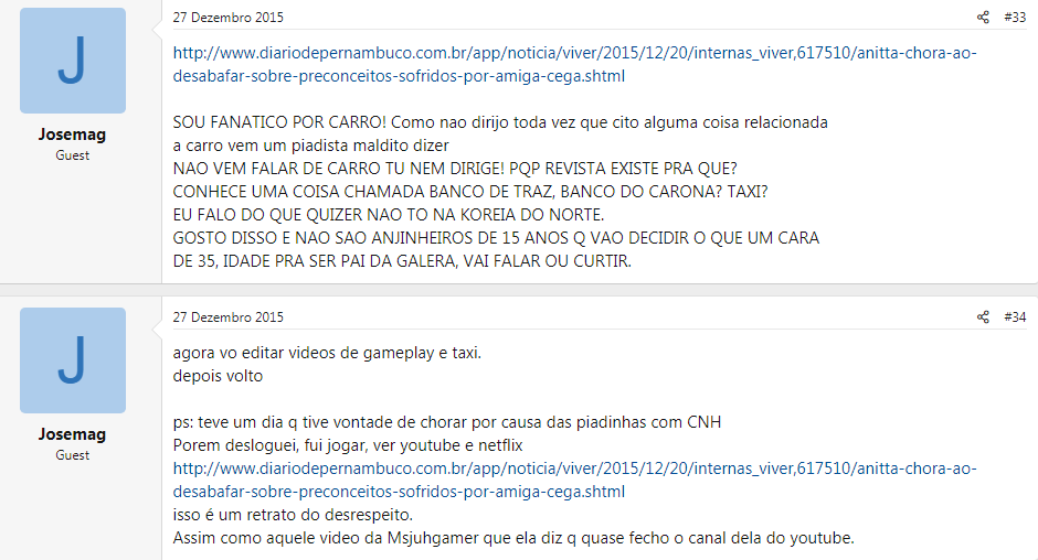 Também postou por um tempo no Politz e tretou bastante lá até tomar vários bans: