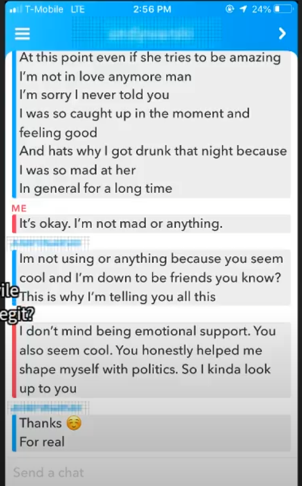 We can construct a timeline now. I have the full stream (all 4+ hours of it) archived, just in case someone tries to nuke it.Edit: Tanya was also messaging him on August 14th. Whether that is the date he told her about the breakup or not remains uncertain, since the breakup message has no date on it.