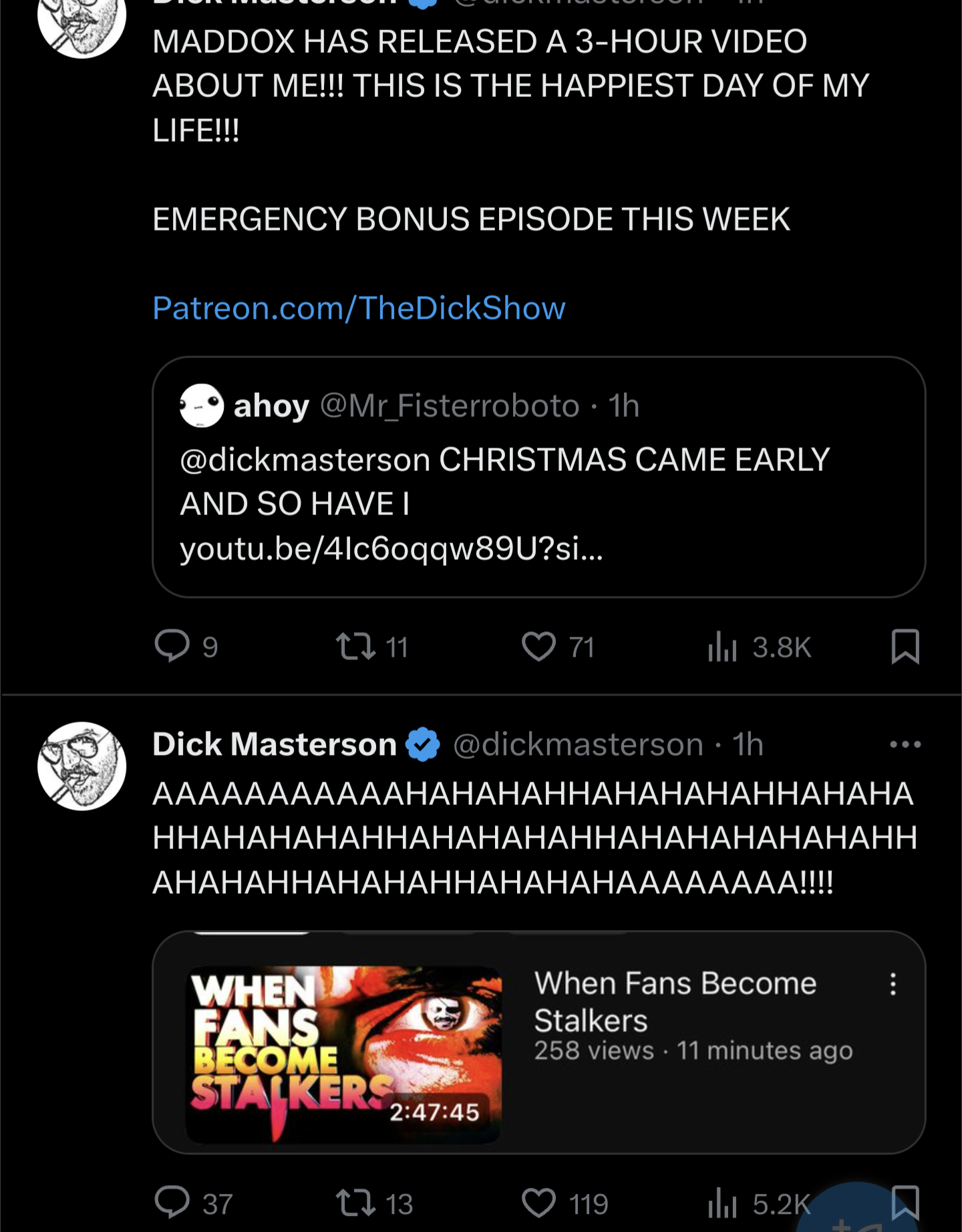 I hate to be that guy but can someone give a quick summary of the situation for those of us unfamiliar? I know of Masterson and I know of Maddox but other then that I have no clue what's going on.Phone posting like a fag but Maddox crossover again with Juju The Cow and Dick is going mental on twitter.