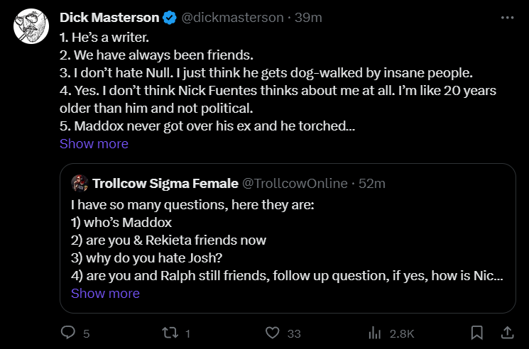 My issue with the video is the fact Maddox is trying to go after people even slightly tangentially related to Dick.