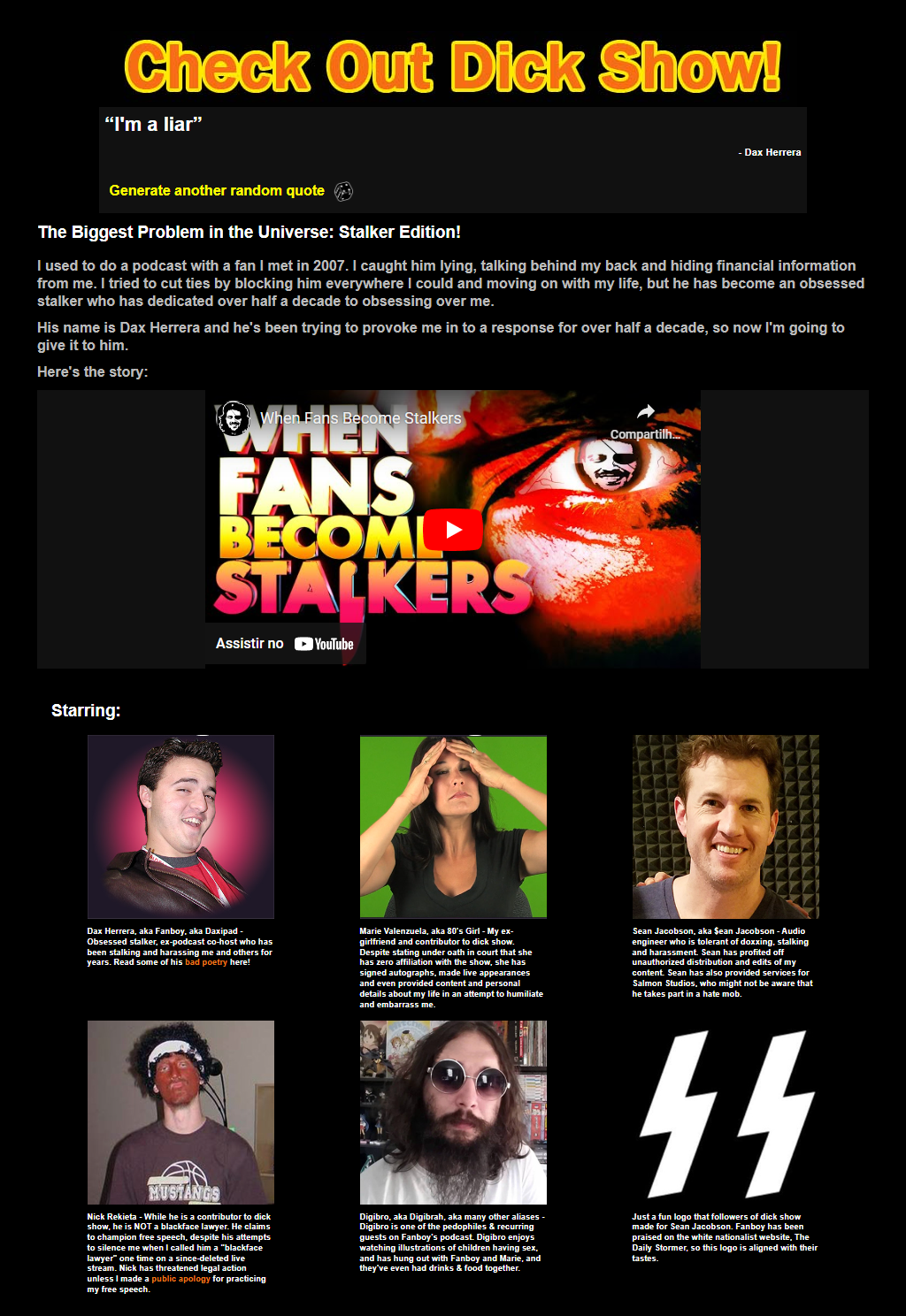 Funniest thing about the video is the amount of times he reveals how much shit hes in financially. He talks multiple times that the reason he couldn't continue any of the legal proceedings is because he doesnt have the money. He forced his ex to defend herself in a restraining order case where she cried to the judge because she got shit on so hard. He also is in a massive amount of debt. He clearly is doing this as a last ditch effort to get his dwindling career back and maybe get some money, and he thinks hes going to win everyone over by doxxing innocent people who did nothing to him.