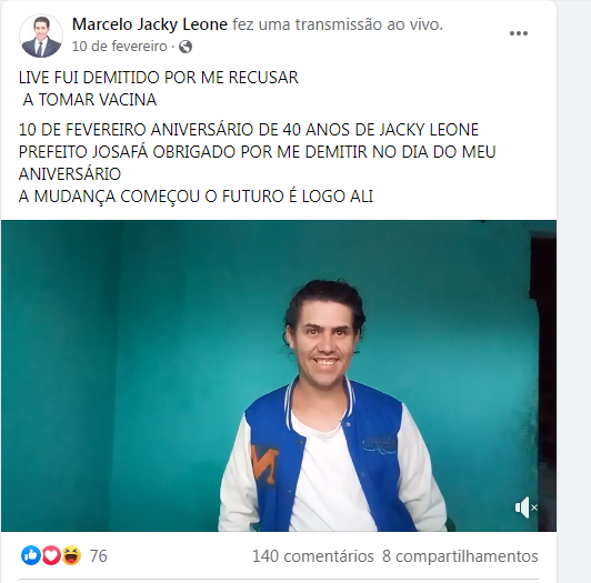 Bravo, Jacky Leone fez um vídeo exaltando o quanto tentou ajudar o povo de São Caetano e a ingratidão que recebeu, enquanto falava que não era fantoche de nenhum político porém continua sendo Bolsonaro 2022: