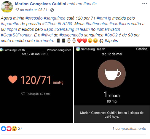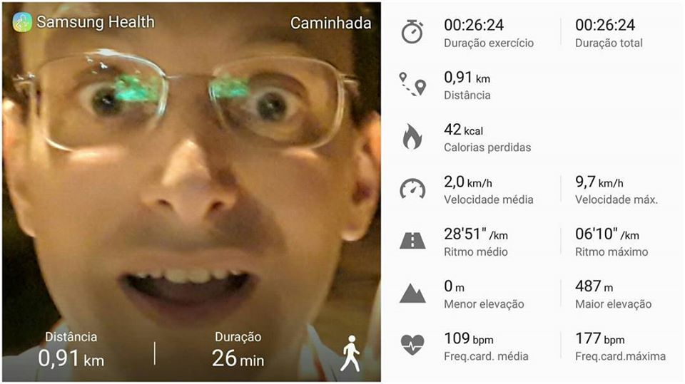 Já foi fazer várias caminhadas, como demonstra em sua obsessão por um app de saúde da Samsung: