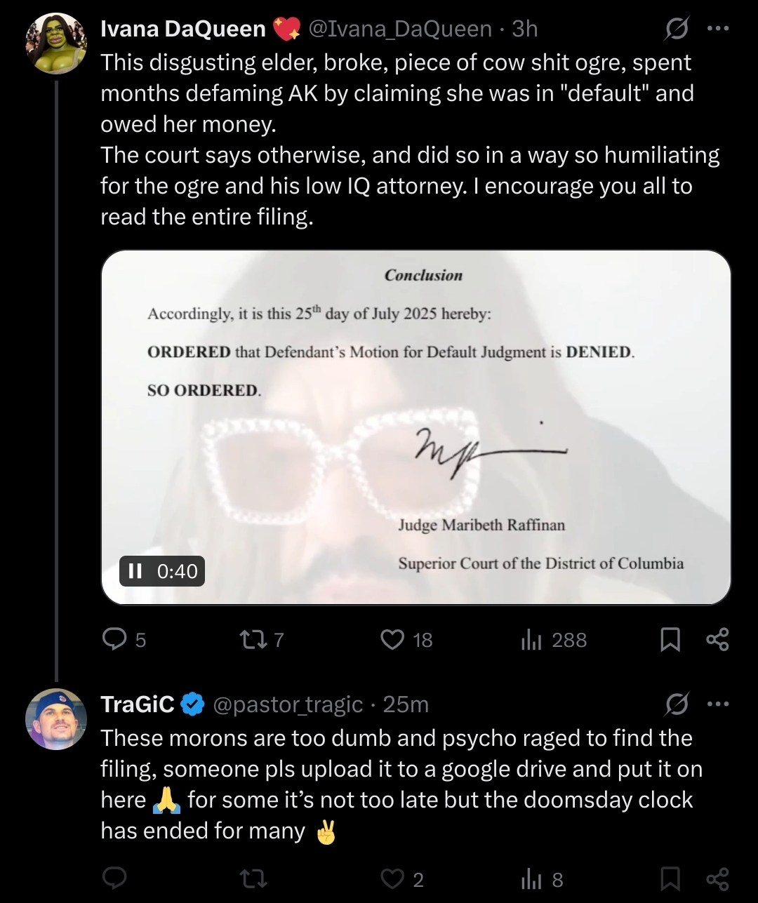 Alex, while claiming people "hide behind Hussy's fat ass" fails to recognize that ultimately Tragic in his one and only defense of AK - the claim they share accounts fucked them all over. He knows that though and he is laughing at all of you. So are we.)