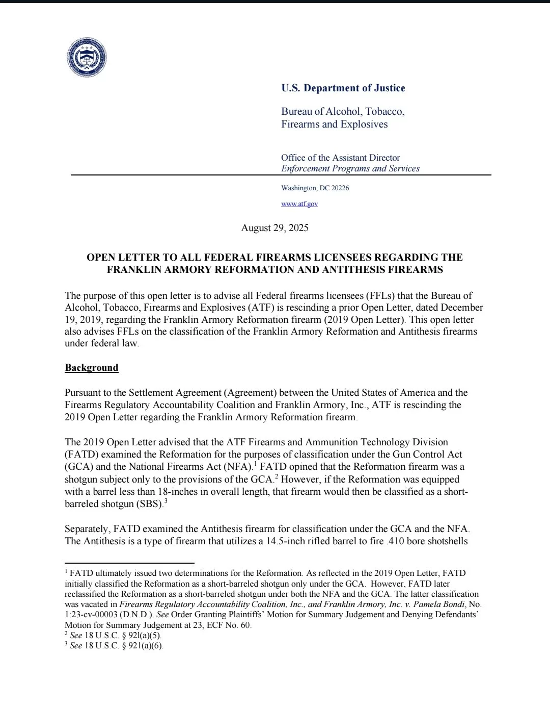 Nobody but Franklin and a small subset of lawyers with in the DOJ could really tell you because as far as I know the settlement agreement isn't publicWait... Correct me if I am wrong but would duplex ammo apply to a firearm like this?