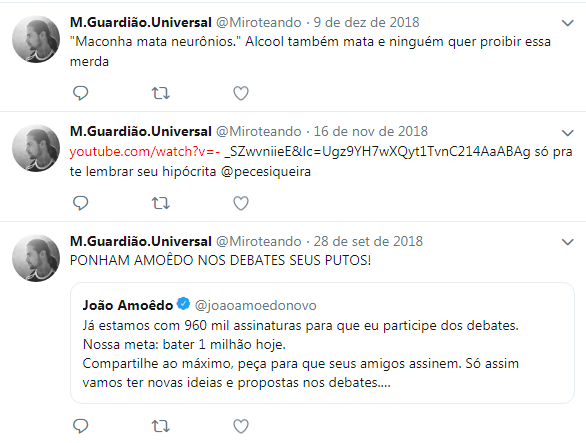 Em 2018 Milton teria voltado temporariamente no Twitter para comentar as últimas e fazer um apoio o Amôedo: