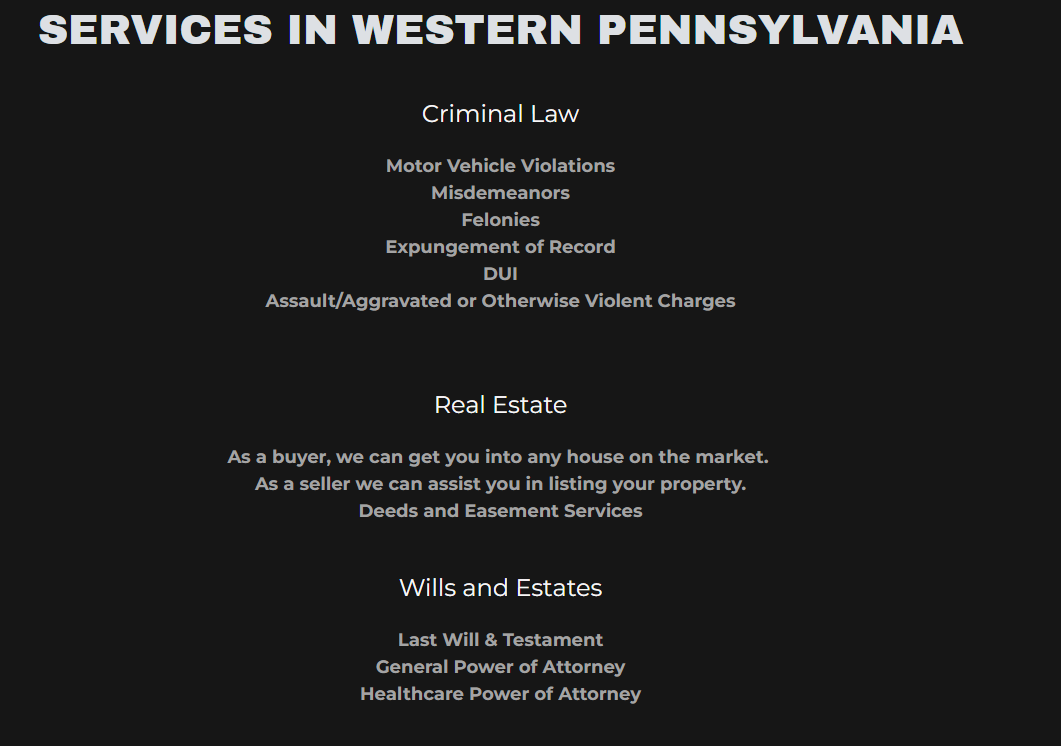 His whole law practice seems to be composed of a one page website on GoDaddy sites which seems just to be a mildly modified template with a simple contact form.
