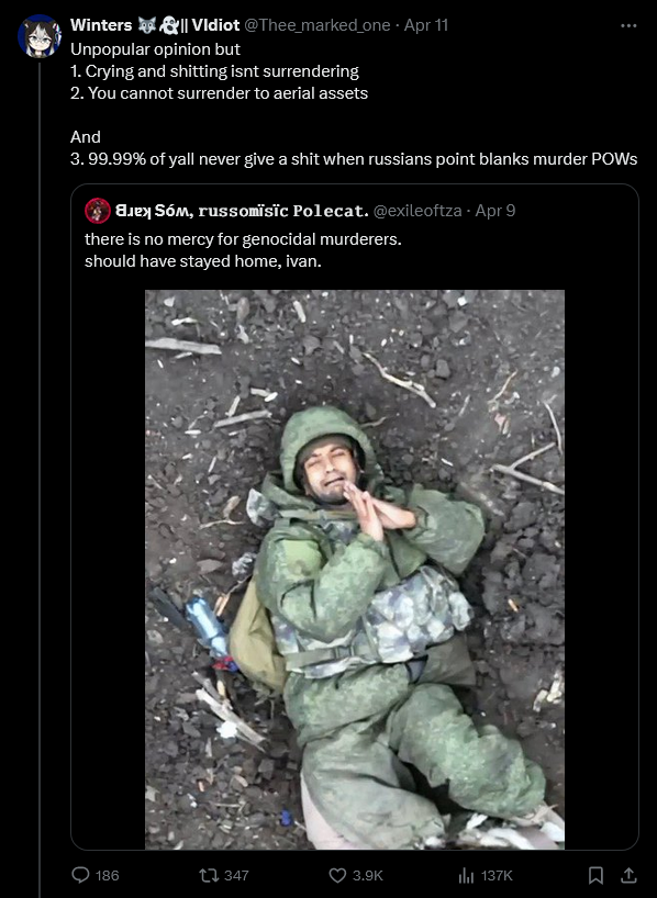 Winter isn't a vocal NAFO account but clearly falls into a lot of the NAFO ideas in this single tweet, though with the use of "Moralfags" instead of "Vatniks."